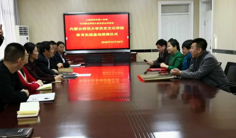 2018年12月26日,yl6809永利集团院长白玉双、王海凤副教授、历史学系副系主任齐英、教学与科研办公室副主任乌力吉通拉嘎一行四人赴二连浩特市调研实习工作,并与第一中学和二连浩特市蒙古族中学举行教育实习基地合作协议签订暨挂牌仪式。