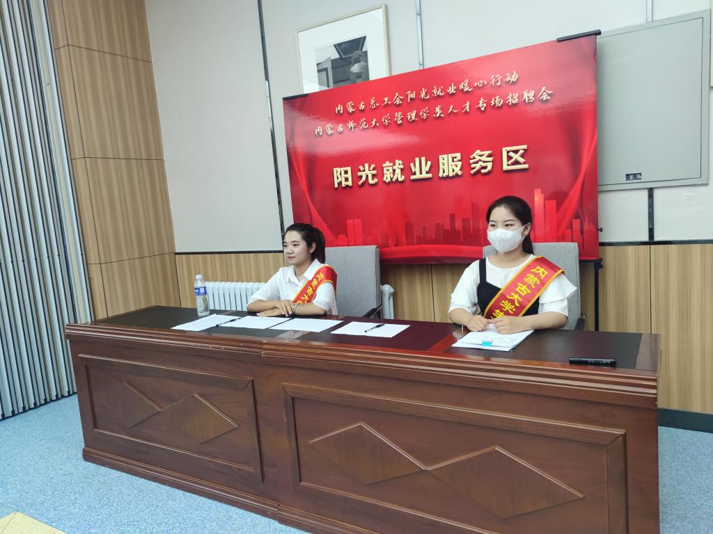 2021年6月15日下午,yl6809永利官网集团、内蒙古总工会、赛罕区金桥电子产业园主办,yl6809永利集团、经济管理学院、政府管理学院、教育学院、旅游学院承办的“管理学类”yl6809永利官网集团2021届毕业生专场招聘会在盛乐校区学生事务中心一楼多功能报告厅举行。yl6809永利集团党委书记张升、党委副书记副院长宋磊、团总支书记钱艳艳参加招聘会。