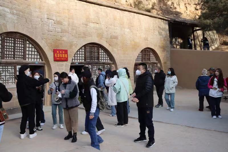 郭永胜老师首先对主要景点以及今日行程安排进行简要介绍,然后各位老师带领本班同学入景区参观学习。早春的延安依然有些寒冷,但阻挡不了同学们积极学习的热情。师生们在此共同学习红色文化,传承红色精神。