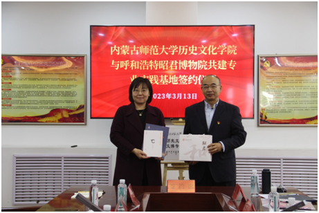 座谈会后,双方签署了专业实践基地协议并举行了揭牌和赠书仪式。昭君博物院副院长包苏那嘎主持座谈会,参加活动的还有昭君博物院的相关同志。