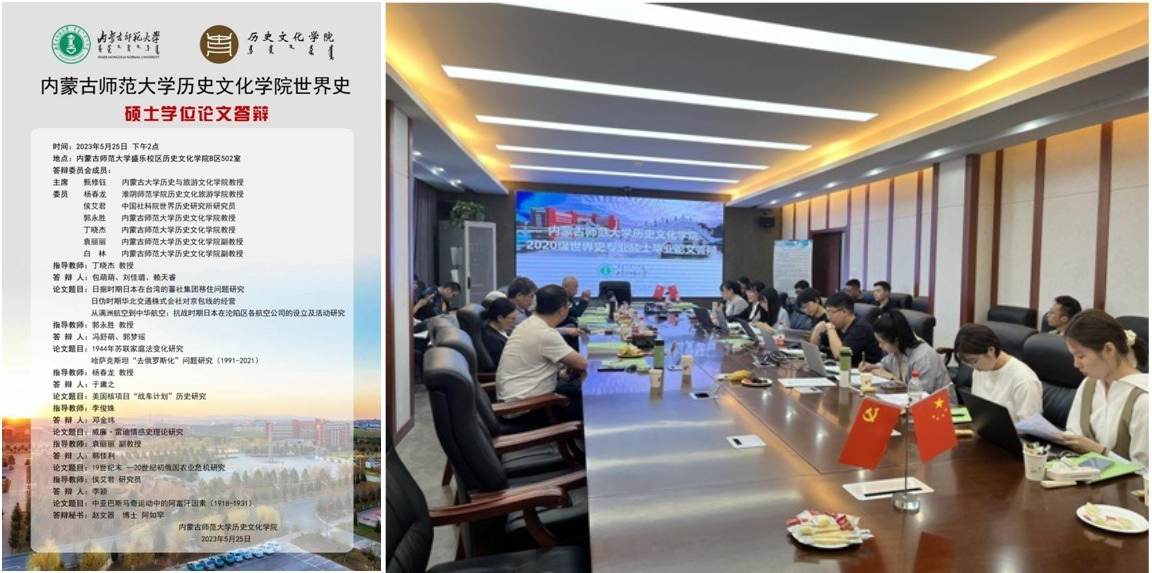 2023年5月25日下午,yl6809永利集团2020级世界史专业硕士毕业论文答辩于盛乐校区学院楼B区502教室顺利举行。