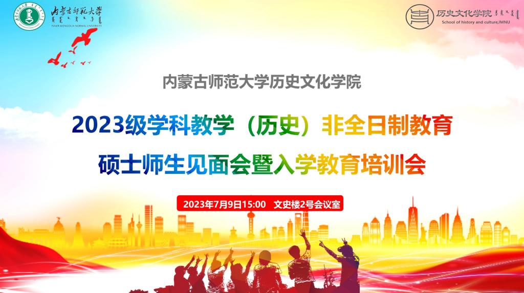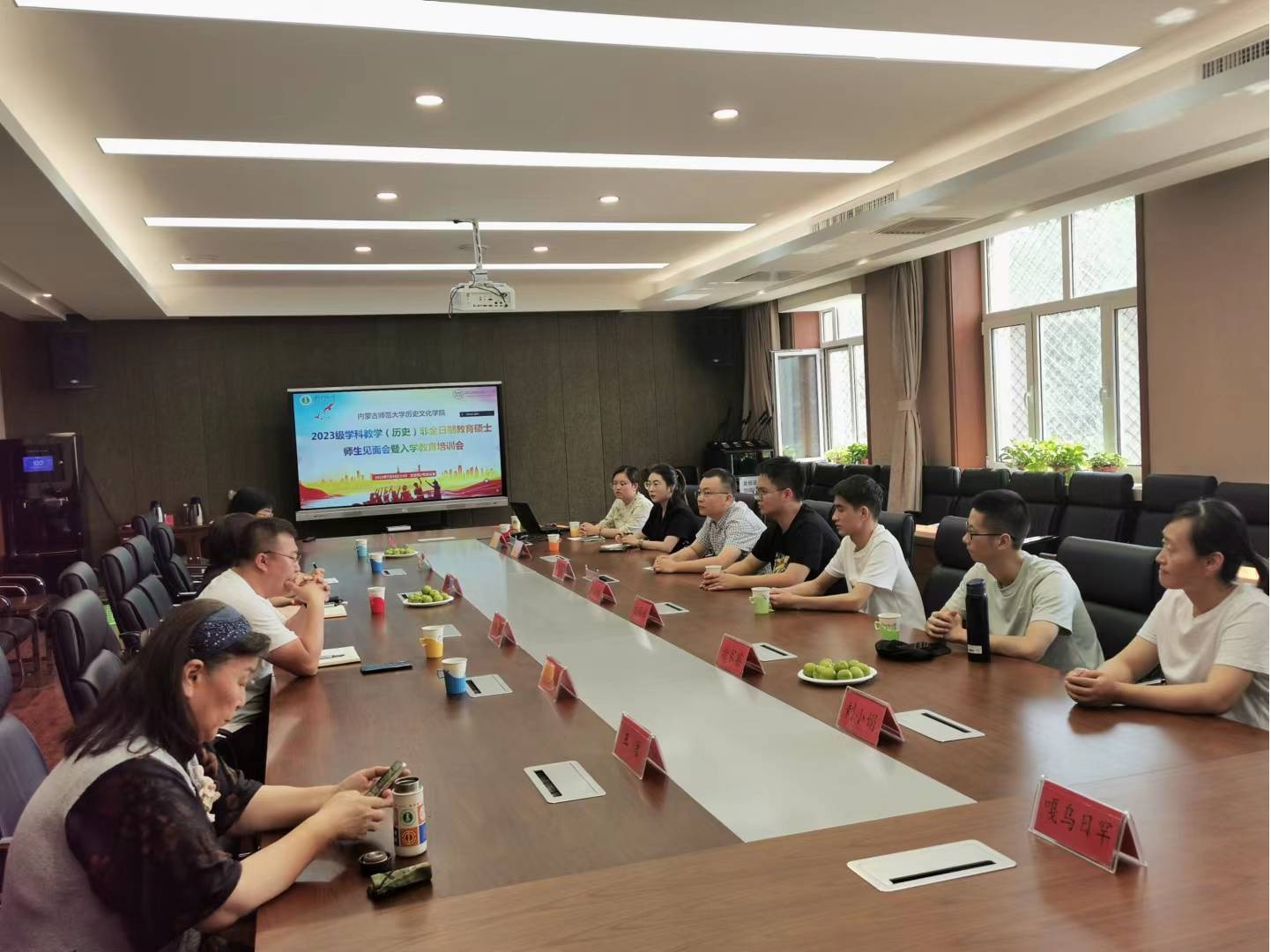 2023年7月9日,yl6809永利集团在赛罕校区文史楼2号会议室召开“2023级学科教学(历史)非全日制教育硕士师生见面会暨入学教育培训会”,学院党委书记李艳洁、副书记檀晶、副院长白林代表学院领导班子出席了会议,此外参加会议的还有非全日制研究生导师于永、乌兰其木格、王洁、于志勇、班主任孟燕云以及2023级学科教学(历史)非全日制研究生全体同学。