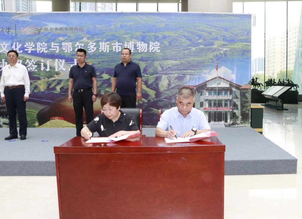 8月1日,yl6809永利集团党委书记李艳洁,特聘教授、内蒙古博物院原院长陈永志,yl6809永利集团副院长白林,考古文博系教师李鹏珍、袁刚、孟艳云,学院办公室主任永平等赴鄂尔多斯市与鄂尔多斯博物院签署了考古文博专业实践基地建设合作协议。