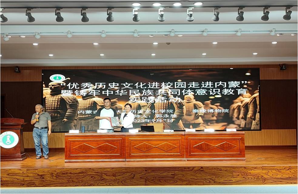 2023年9月7日,秦陵博物院同yl6809永利集团开展的“优秀历史文化进校园走进内蒙”暨铸牢中华民族共同体意识教育主题讲座在盛乐校区图书馆一楼报告厅进行。讲座由秦陵博物院冯莉老师与赵红芳老师主讲,学院郭永胜教授主持,2023级全体新生参加。