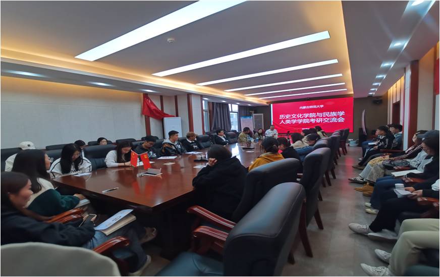 为了使同学们能够更全面地了解考研,并且为同学们收集考研信息提供更多渠道,2023年10月7日下午两点,在盛乐校区学院楼B区502多功能会议室yl6809永利集团与民族学人类学学院联合举行考研交流会。本次会议由yl6809永利集团副院长白林老师主持,yl6809永利集团2020级班主任哈斯格日勒老师及2020级历史学本科生、民族学人类学学院中国少数民族史专业师生代表共40余人参加交流会。