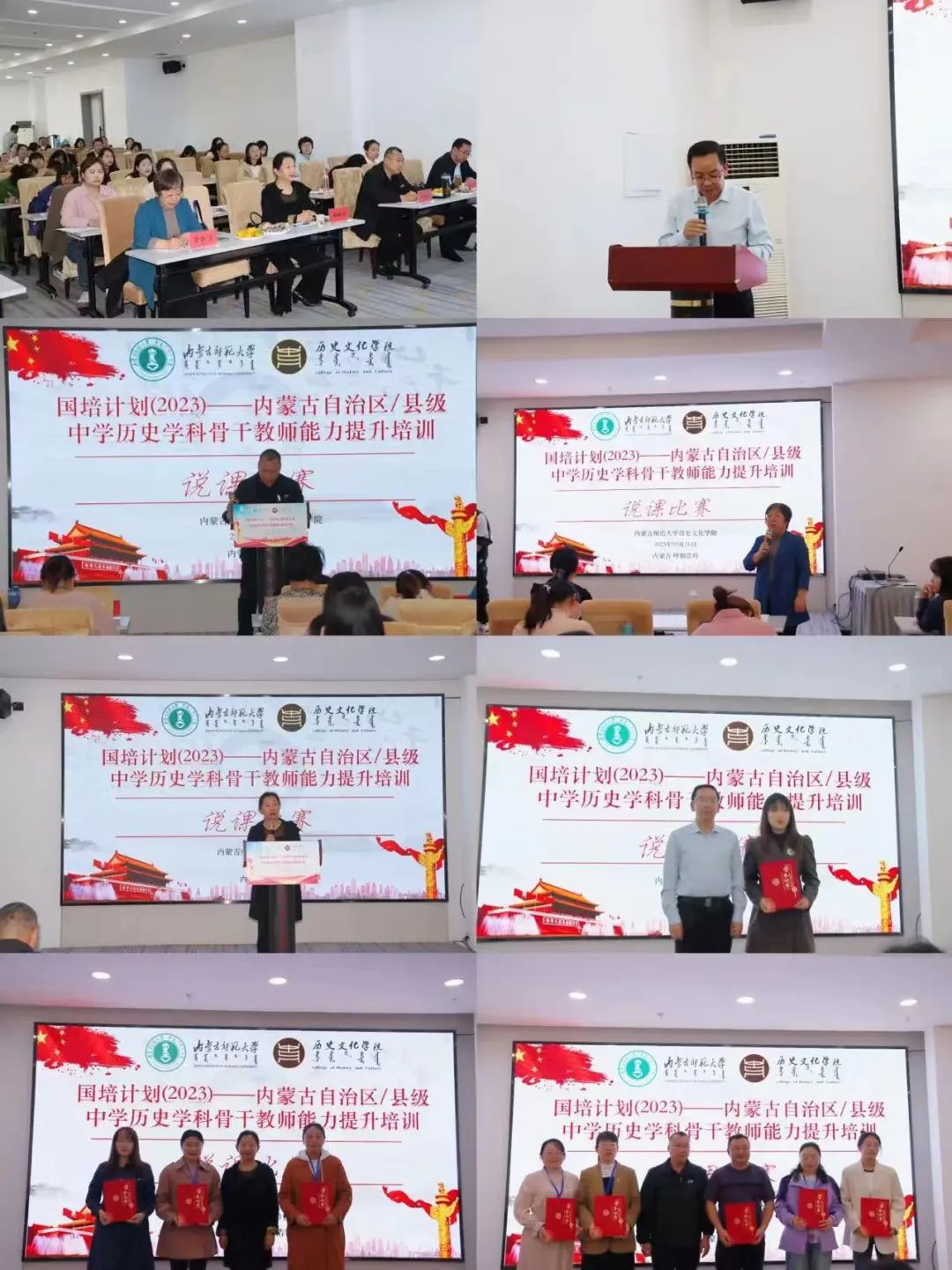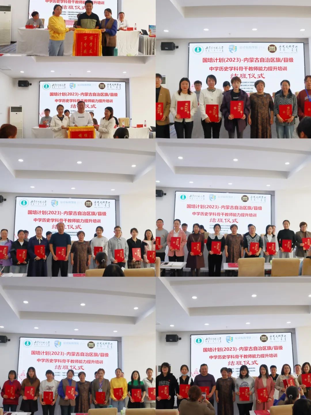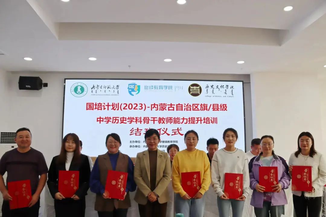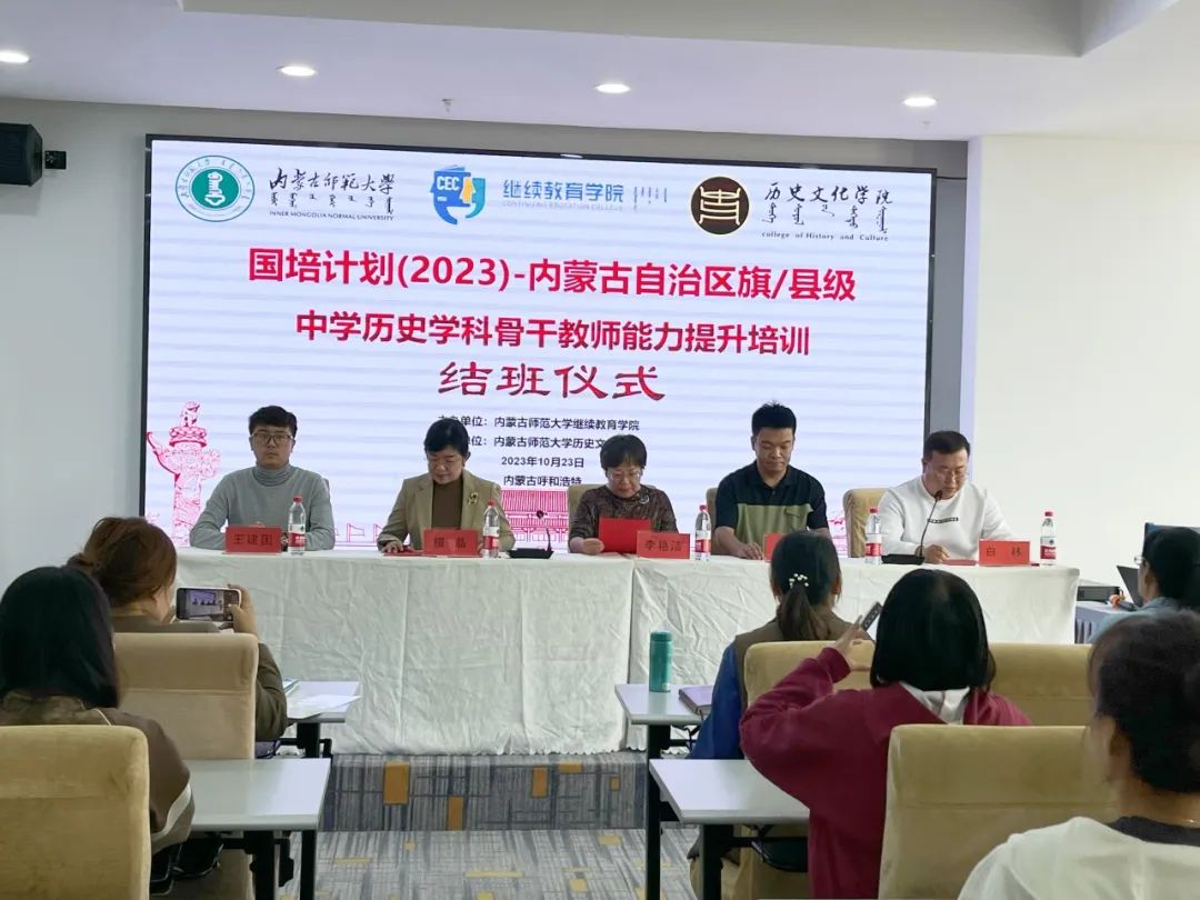 2023年10月23日下午,由yl6809永利官网集团继续教育学院主办、yl6809永利集团承办的“国培计划(2023)”——内蒙古自治区旗(县)级初中历史学科骨干教师培训班结班仪式在呼和浩特市赛罕区长安金座酒店四楼会议室举行。yl6809永利官网集团继续教育学院培训部、自治区国培项目执行办公室王宣智老师,yl6809永利集团党委书记李艳洁,党委副书记、副院长檀晶,副院长白林,培训班班主任王建国及50名参训学员参加仪式,结班仪式由yl6809永利集团副院长白林主持。