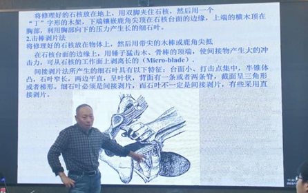 11月14号,陈教授结合我们田野考察收获的石器进行讲解,向我们介绍了打制石器所用的工具。