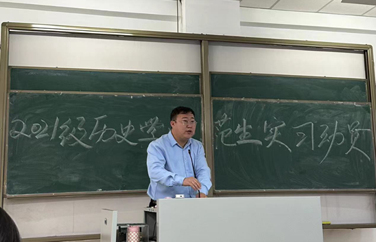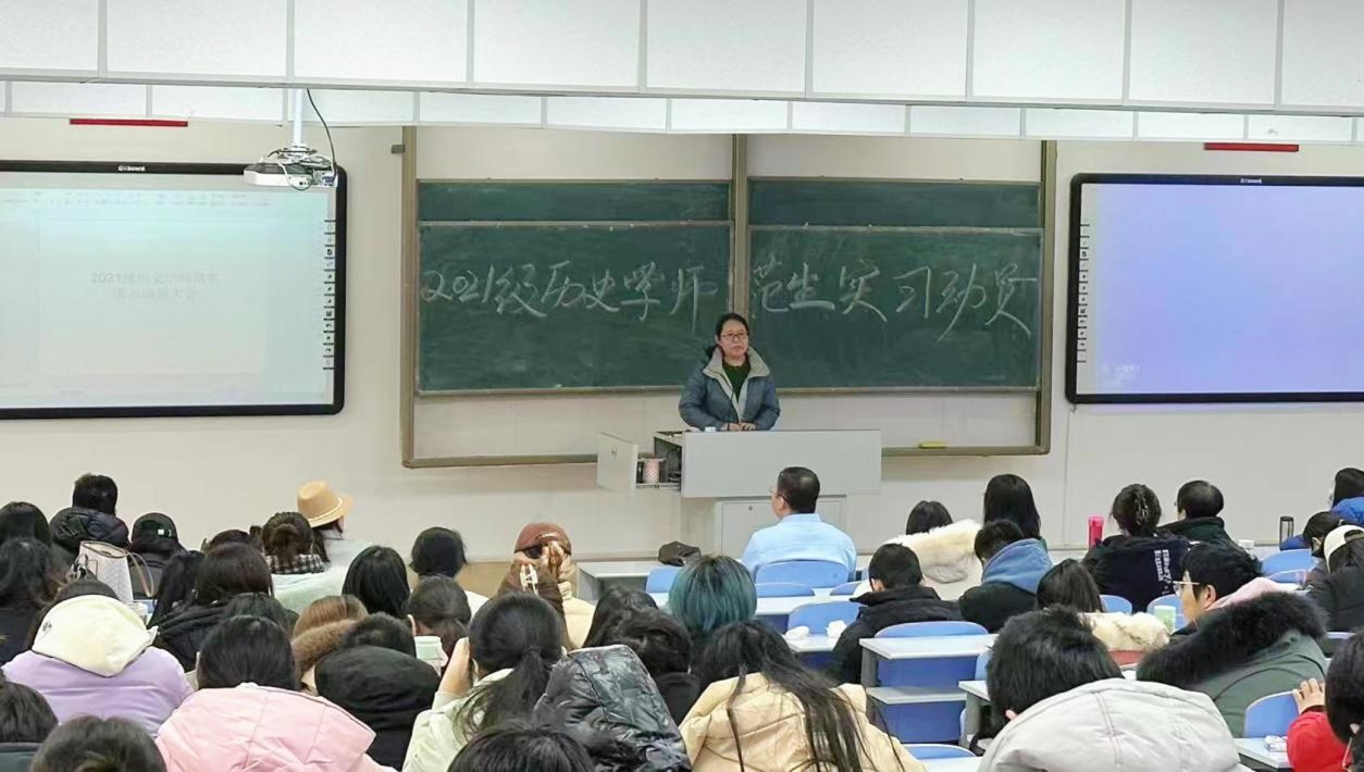 为确保2021级历史学专业师范生实习工作的顺利开展,助力2021级历史学专业师范生进一步明晰教育实习的重要性,在实践场地锤炼本领、提升素养,我院于2023年12月30日上午10时在行知楼105召开2021级历史学专业师范生实习动员大会。党委副书记副院长檀晶、副院长白林、21级各班班主任、各位实习指导老师以及全体2021级历史学专业师范生参加会议,本次大会由实习负责老师王海凤主持。