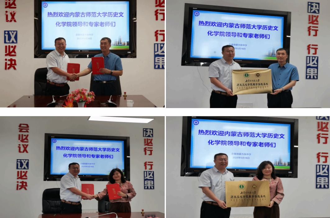 本次调研不仅是实践教学的过程督导,更成为深化校地合作、拓展育人资源的重要契机。学院与科左后旗甘旗卡第一高级中学、科左后旗实验初级中学、奈曼旗实验中学、奈曼旗第一中学、奈曼旗第五中学、奈曼旗蒙古族中学等6所中学签订教育实习基地协议并挂牌,新增实习岗位,为师范生提供更广阔的实践平台。签约仪式上,白林副院长强调:“实习基地是师范生成长为‘四有’好老师的第一站,学院将依托基地建设,推动高校理论教学与基础教育实践深度融合。”