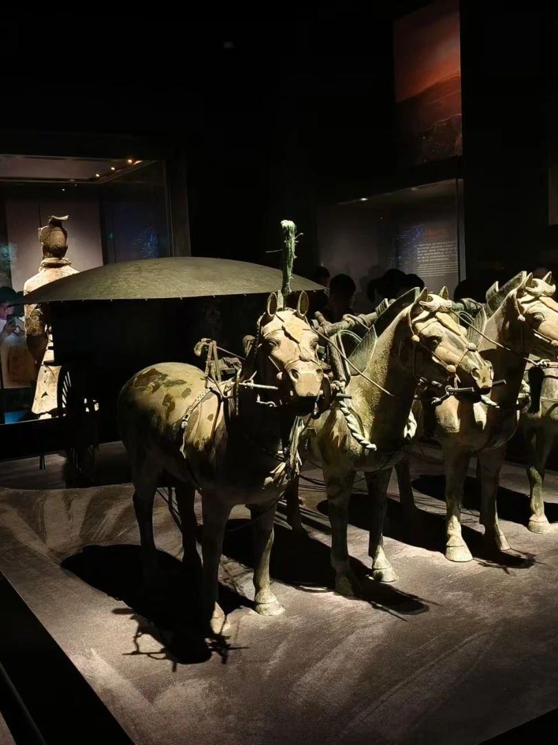 陕西历史博物馆是中国第一座大型现代化国家级博物馆,被誉为“古都明珠,华夏宝库”。馆内琳琅满目的文物吸引了同学们的目光,唐三彩的鲜艳与青铜器的古朴相得益彰,展示了中华文明的源远流长和博大精深,历史的厚重感扑面而来,令同学们心潮澎湃。