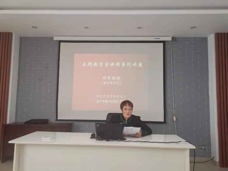 2019年10月17日下午,yl6809永利集团党总支邀请“爱岗照亮初心 敬业担当使命”宣讲团成员政府管理学院教师聂馥玲和蒙古学学院教师斯琴来学院为全体教工进行先进人物事迹报告。