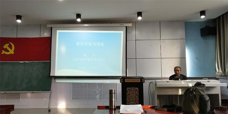 2018年12月18日下午,yl6809永利集团历史学教工党支部、考古文博与行政教工党支部、学生党支部三个支部联合组织集体学习活动,邀请学院党总支书记张升老师为大家讲党课,全院教工学生党员50人参加学习。