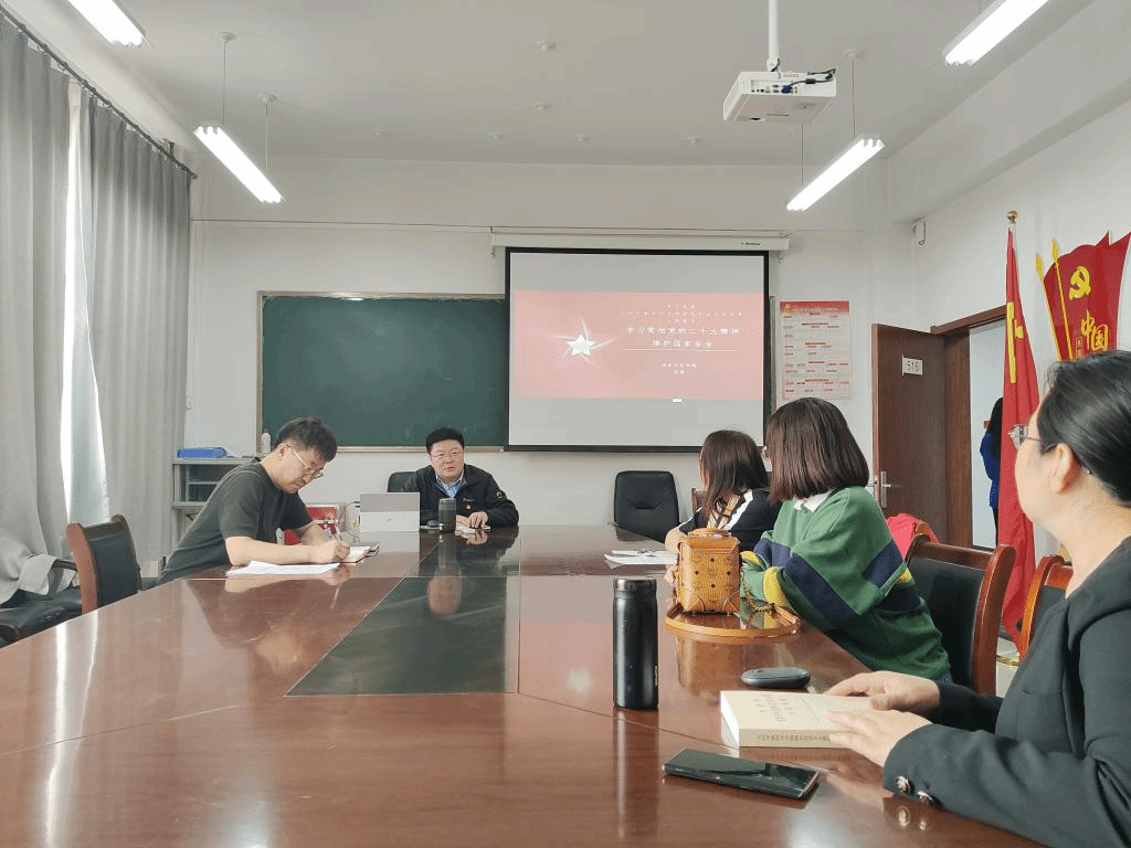 为深入学习贯彻习近平新时代中国特色社会主义思想,yl6809永利集团文博行政教工党支部于2023年4月27日开展集体学习,由学院党委副书记宋磊为大家做《深入学习党的二十大精神,维护国家安全》为内容的专题领学。