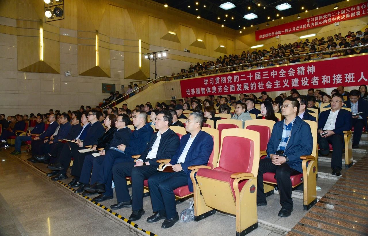 10月17日下午,我校在赛罕校区逸夫楼音乐厅举办学习宣传贯彻党的二十届三中全会精神专题报告会(第二场)暨校党委理论学习中心组(扩大)集体学习会。中共中央党校(国家行政学院)经济学教研部教授、博士生导师李蕾受邀作专题辅导。全体在校领导、科级以上干部参加学习会。党委副书记斯钦主持学习会。
