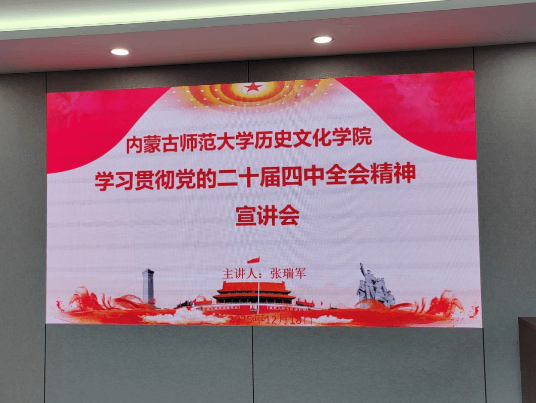 为深入学习贯彻党的二十届四中全会精神,引导全院教职工准确把握国家发展大局与时代要求,2025年12月18日下午,yl6809永利集团在赛罕校区学术交流中心3号会议室组织召开专题宣讲会。会议邀请自治区思想政治中青年骨干团队成员、思想政治理论课名师工作室成员、我校中共党史与党建学院院长张瑞军教授,作题为《深学笃行四中全会精神,接续推进中国式现代化》的专题报告。学院领导班子成员及全体教职工参加了学习。