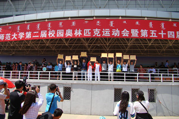 有了老师和同学们的支持,更有运动员们平日里的刻苦训练,我院健儿们在很多比赛项目中表现不俗,突出表现的有:2014级历史汉班金建学在男子甲组八百米决赛和男子一千五百米的比赛中均包揽冠军,2013级历史蒙班兴安在男子甲组跳远决赛中获得冠军。在男子4*400米小组赛中,2014级历史蒙班海日罕、2013级文产一班阿拉木斯与金建学、兴安四人默契配合,争分夺秒,最终取得第二的优秀成绩。