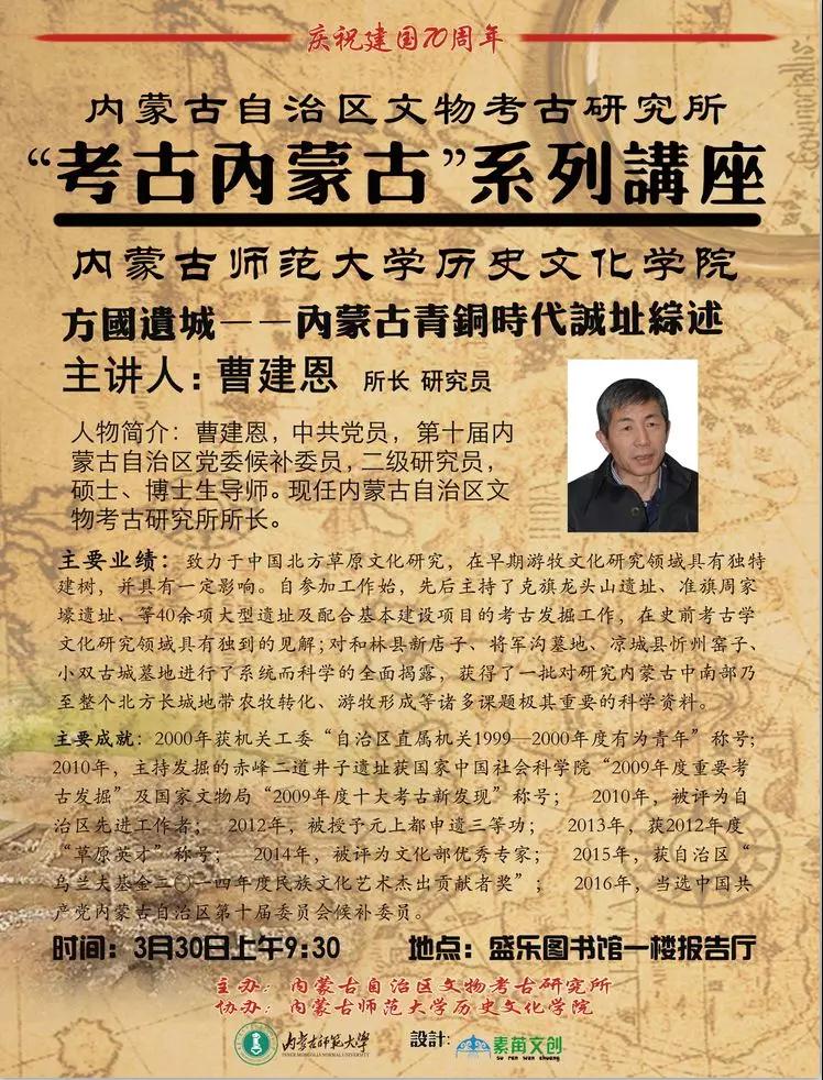 在夏风掠过树叶,卷走绿意盎然的脚步启程时节,我们结束了一个学期的学习。经此学途,我们收获了更多的专业知识,老师也想方设法地请来了学界知名的学者,使我们开拓眼界,在丰富知识的同时,对自己的未来也有了更多的想法。 第一场讲座是2019年3月30日(周六)上午9:30于yl6809永利官网集团盛乐校区图书馆一楼报告厅由内蒙古自治区文物考古研究所所长曹建恩带来关于方国遗城——内蒙古青铜时代城址综述的分享。主要内容如下:
