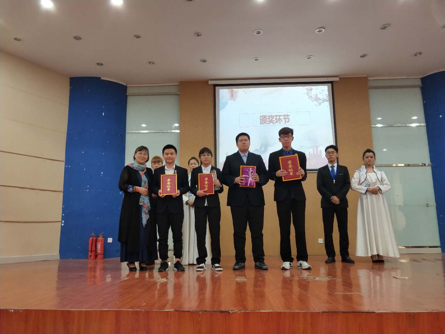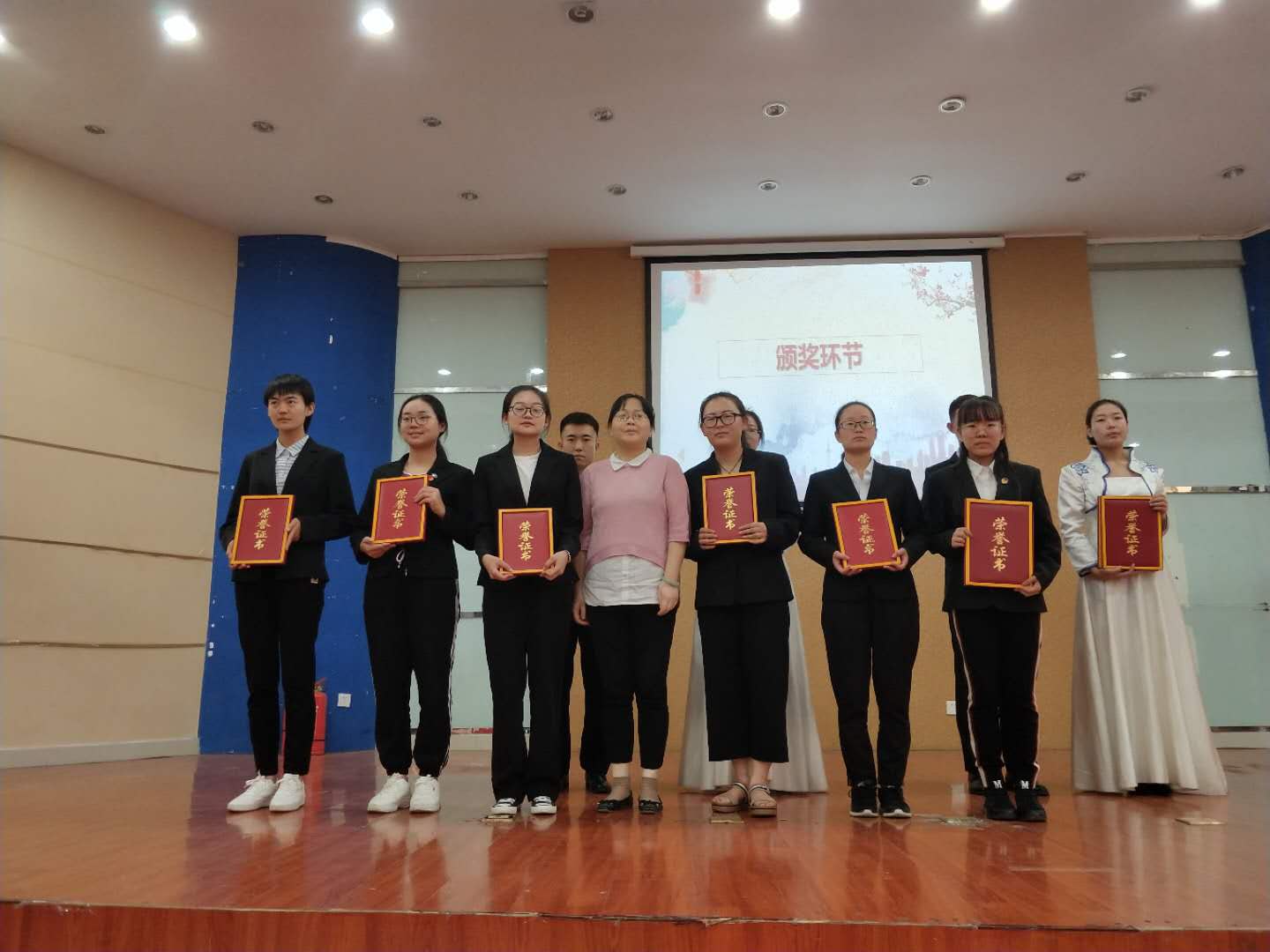 五轮角逐后,最终,yl6809永利集团以400分的优秀成绩获得冠军,文学院以及社会学民俗学学院分获亚军和季军。我院团总支副书记钱艳艳老师、学院老师王洁、李艳洁、李岭为优胜组颁发了荣誉证书和奖杯并合影留念。