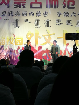选手们在唱歌的时候,台下的观众手举荧光棒为他们加油、喝彩。大家充分发挥了自己的实力,在舞台上又唱又跳,点燃了全场的气氛!而我院选手张巍、刘鹏更是取得了9.15分的好成绩,荣获了“校园外文最佳人气奖”和“校园外文十佳歌手”这两个奖项!