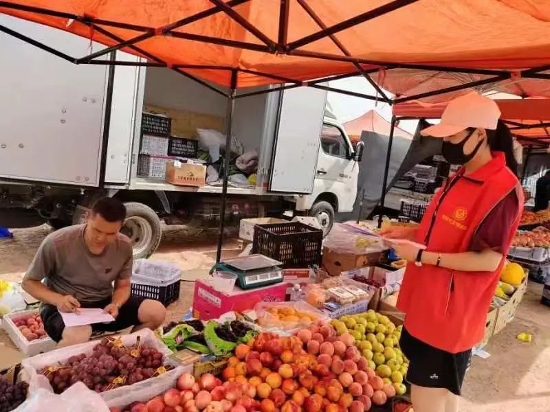 在敖勒召其镇乌兰新区夜市协助社区服务人员进行民意调查