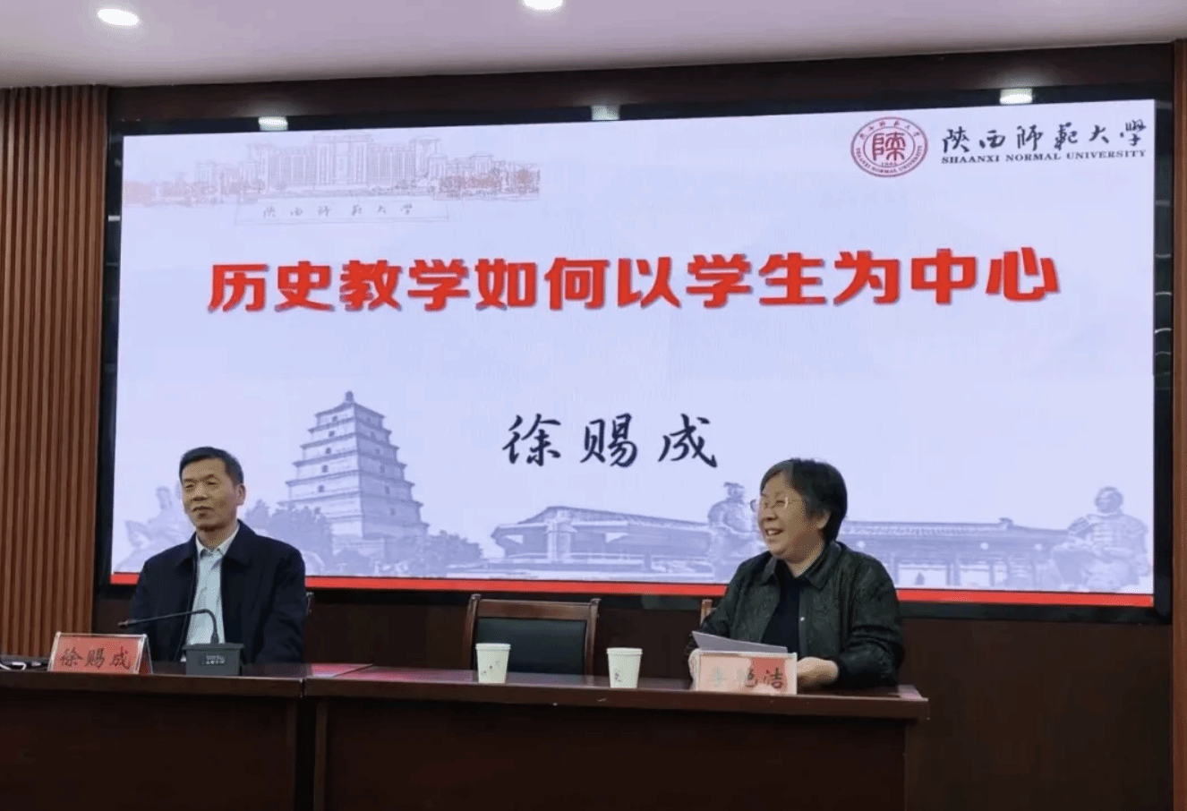 首场讲座由陕西师范大学徐赐成教授主讲。徐赐成教授以《历史教学如何以学生为中心》为题,围绕深入理解历史学习的本质展开阐述。徐教授结合大量中学历史教学实例,探讨了如何在教学中真正落实“以学生为中心”的教育理念,他指出:历史学习是以学生为主体的认知建构,历史知识要站在学生的角度理解;历史教学是以学生为中心的问题探究,探究需要提问加追问;历史课堂是以师生对话为基础的思想成长,教学过程是师生不断对话的过程。徐教授的讲座内容详实、逻辑清晰,引发了在场师生的深入思考。